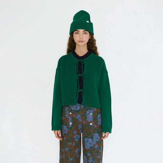Tie Detail Cardigan Dark Green
