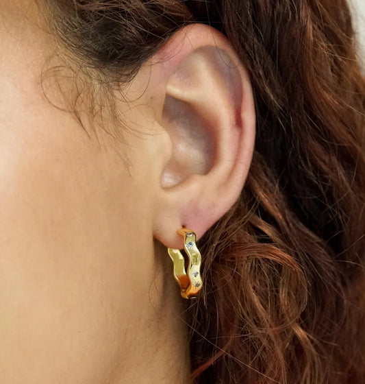 Pastel Jewelled Wiggle Hoop Earrings - Gold