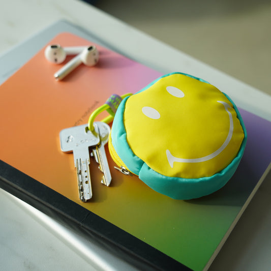 Sold outSmiley Leather Key Ring - Grey/ Pink