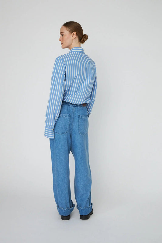 Washed Blue Shirt With Scallop Edge