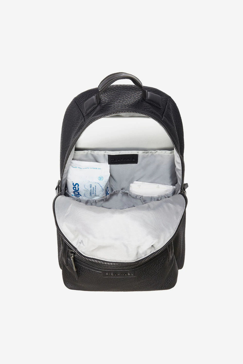 Spot clean internals with a damp cloth. Spot clean exterior with a damp cloth. Spot clean or hand wash padded changing mat. We advise that when zipping and unzipping your backpack you hold it or place in onto a surface. Do not hold it by the actual zips to open and close it. If hanging your bag on a stroller, do so by using our T+M stroller clips (available separately) or placing the shoulder straps over the handles. Do not hang the bag from a stroller clip by the grab handle.
