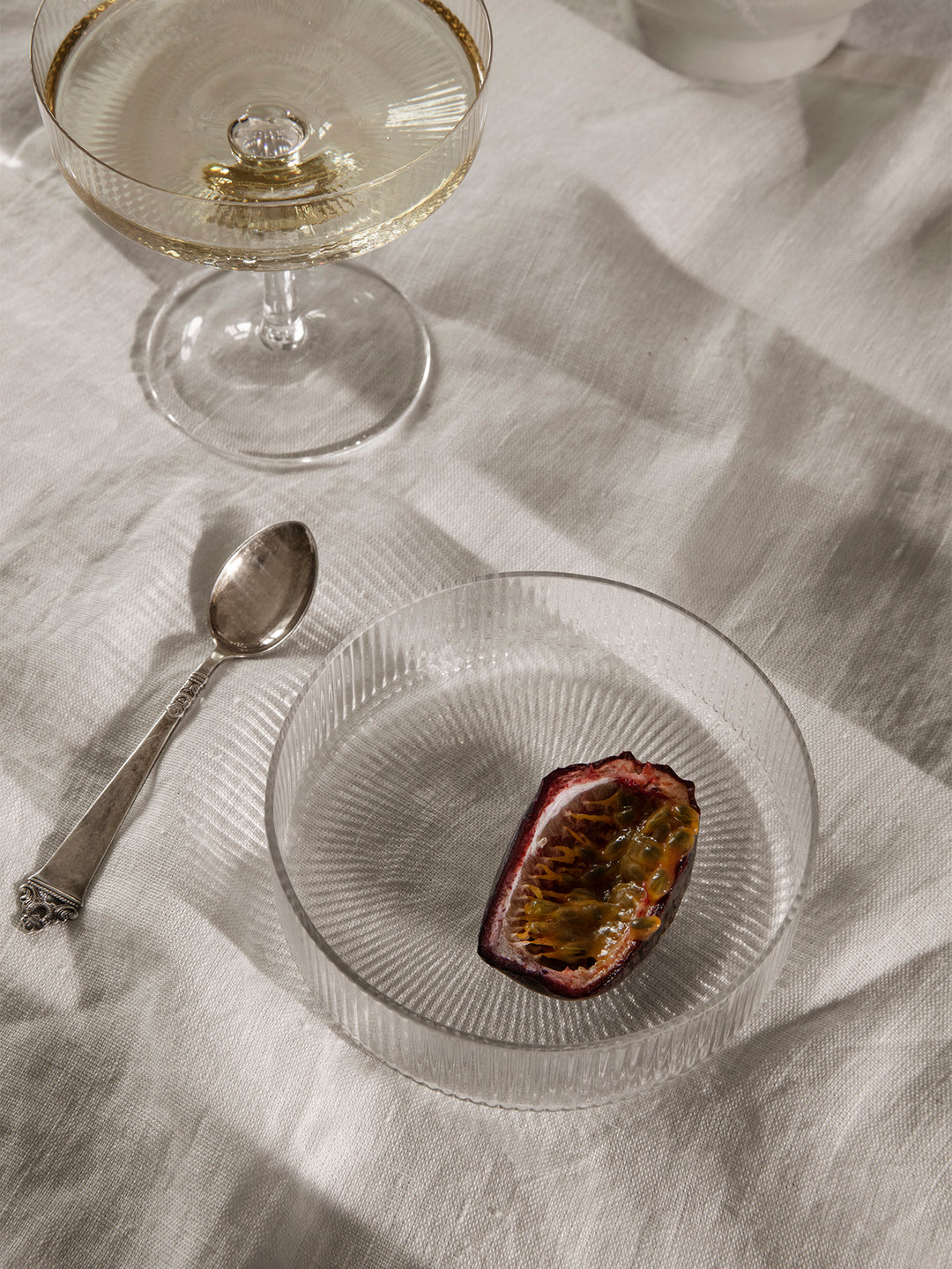 Made from delicate glass which has been mouth-blown into a rippled mould, the Ripple Serving Bowls are a set of four bowls that feature the same characteristic surface distinctive to the Ripple series. Use the set to serve appetising olives, tapenades or other savoury snacks to your guests, or to present your loved ones with a delicious dessert.