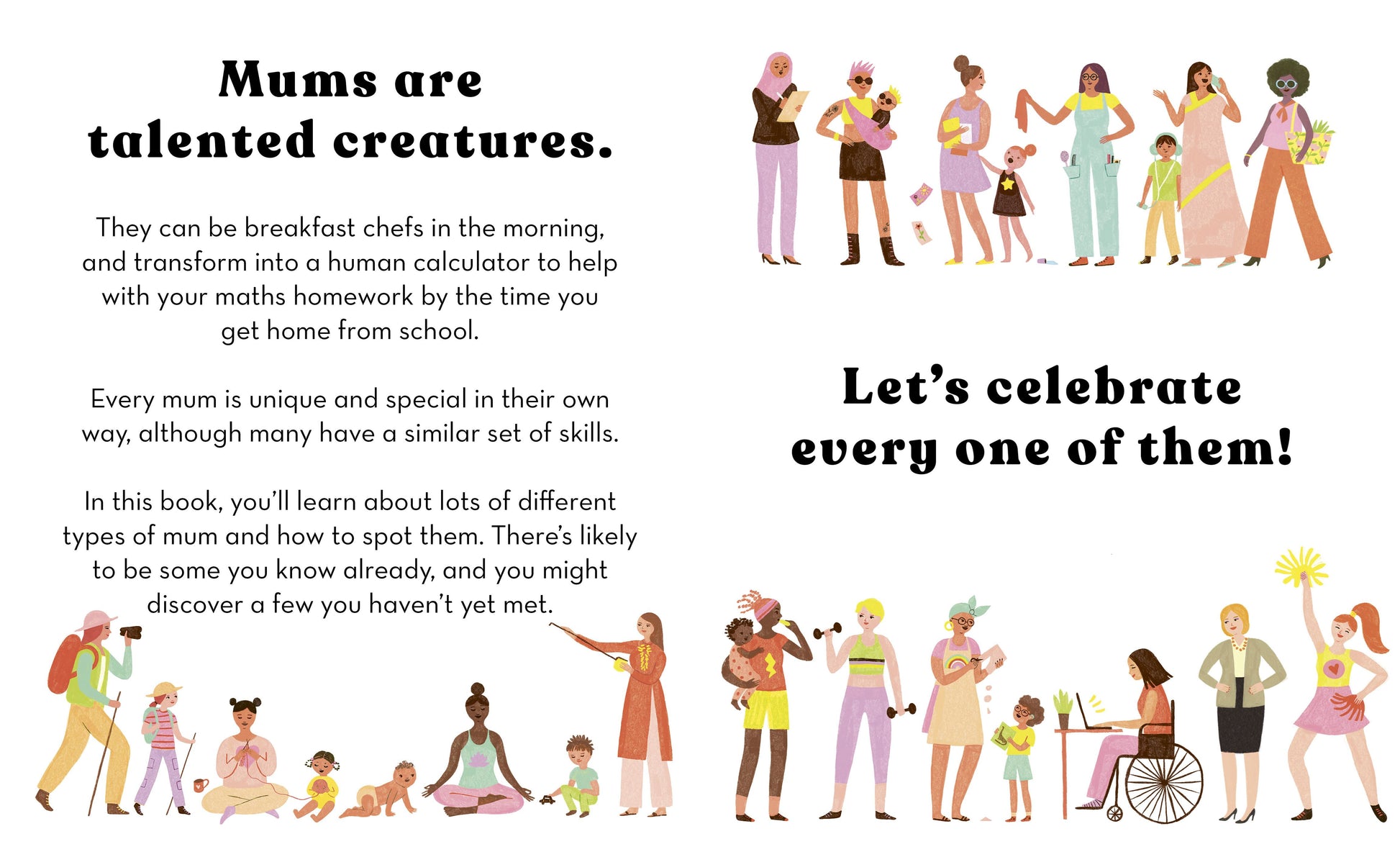 This beautifully illustrated book is the perfect ‘Spotter’s Guide’ to mums. You’ll meet many different types of mum - from the Outdoorsy Mum who loves fresh air and the Chatty Mum who’s always got a story, to the Rebel Mum who never reads the instructions. And you'll learn some of the special skills they have, including detecting fibs, solving mysteries and conflict resolution. You may spot yourself, or your own mum on the pages, too! A tongue-in-cheek tribute to all mums, everywhere.