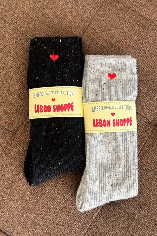 Embroidered Snow Socks - Cookies & Cream Embroidered Heart