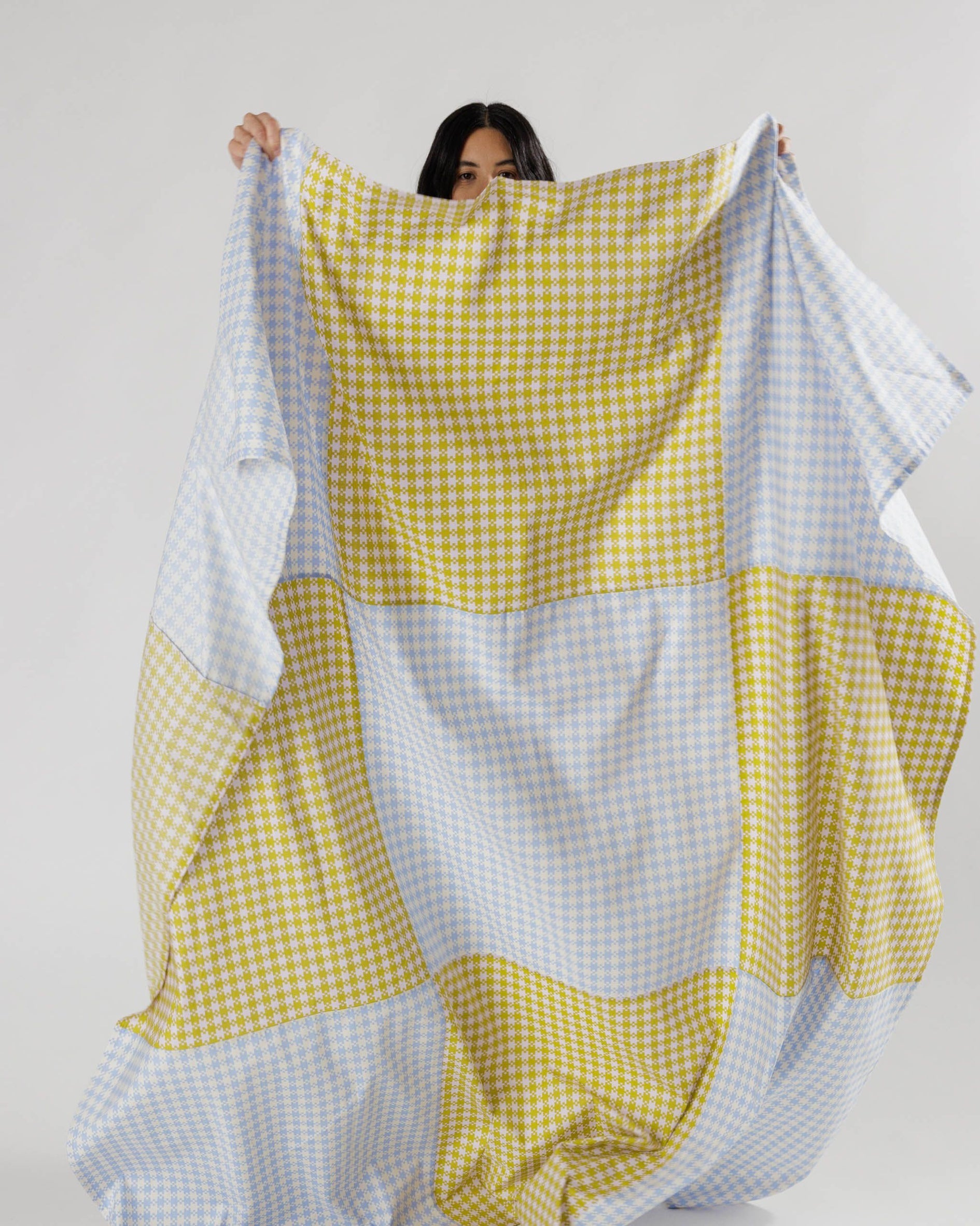 An enormous version of our organic cotton reusable cloths — perfect for lunches in the park, naps at the beach, as a tablecloth, cover for your pillow fort, or anywhere else you need 36 square feet of coverage.