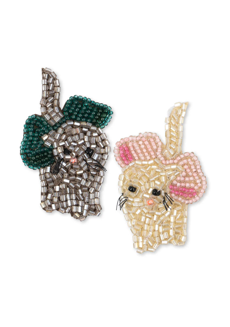 2 Pack Bow Kitty Beaded Hair Clip