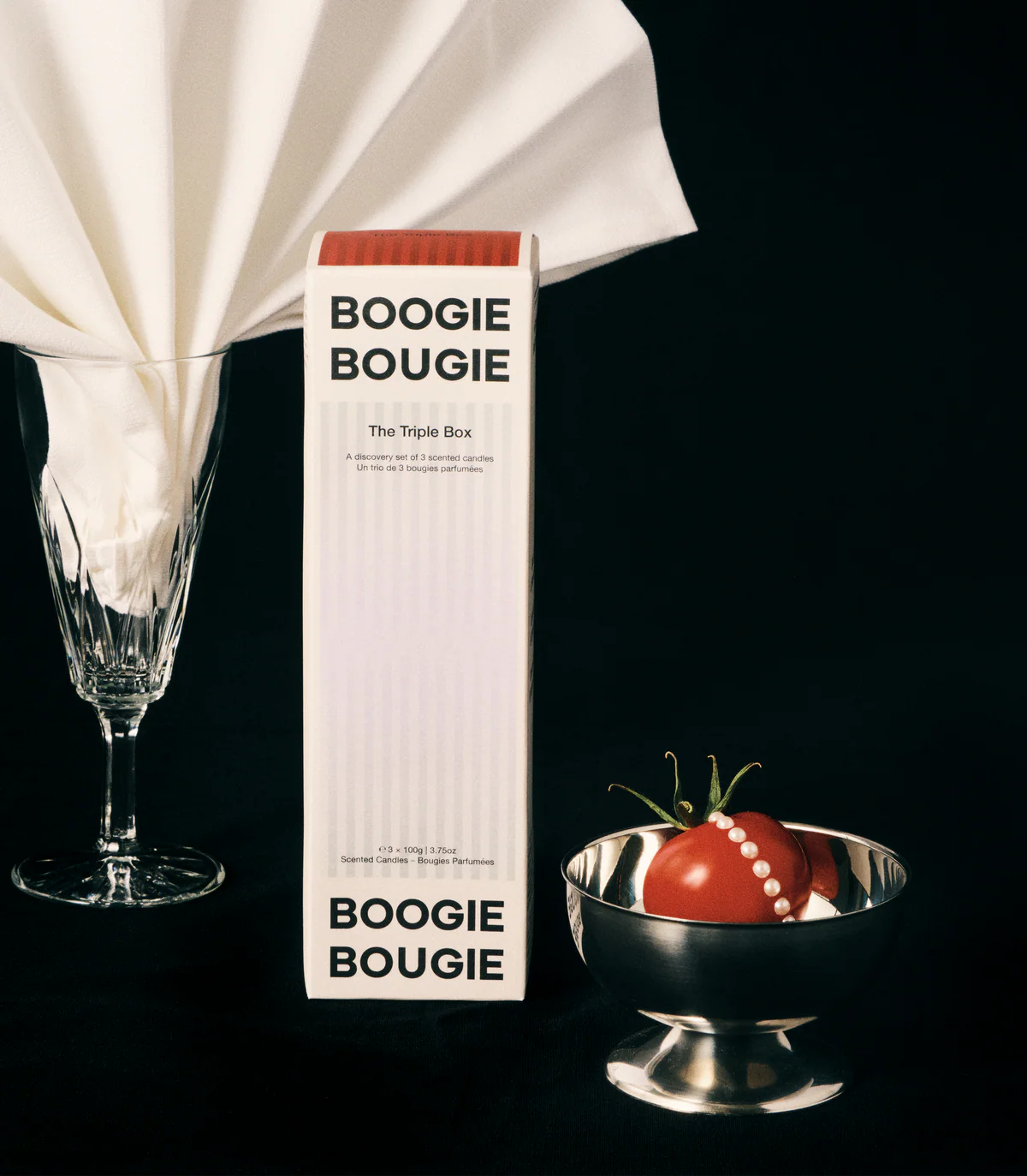 The Triple Box is an olfactory journey through a selection of some of our finest fragrances. Whatever trips your trigger, keep the ambiance in check with the sweet and spicy 'Lipstick Stains & Cinnamon Sins', woody and oriental 'Silver Suede & Fireplace Haze', and the gourmand 'Caramel Leather & Incense Innuendo'.