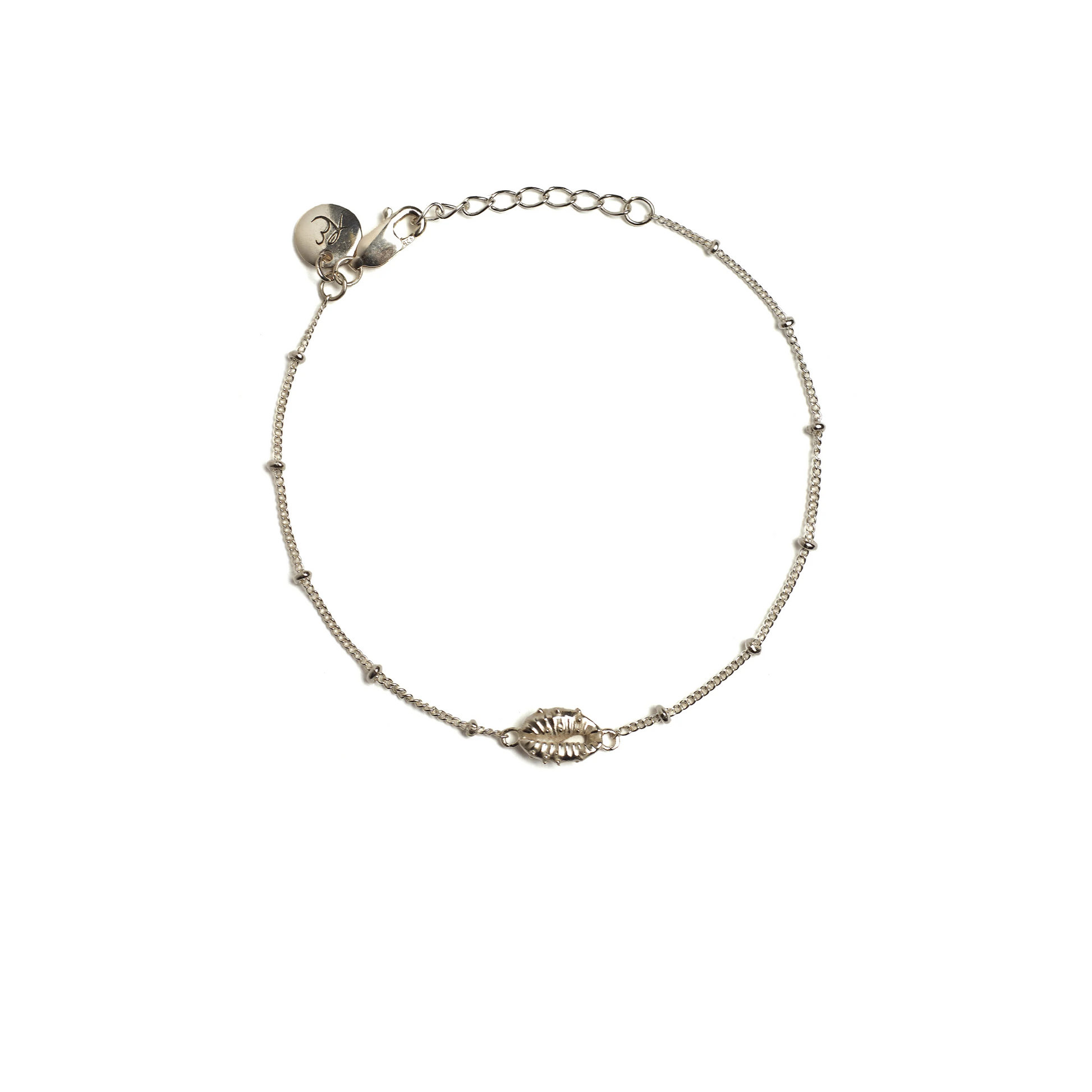 Delicately strung on a fine ball chain that mirrors the shell’s carved detail. The Aphrodite Mini Bracelet is light enough for everyday wear, layered or alone. A quiet talisman to accompany you on every journey.