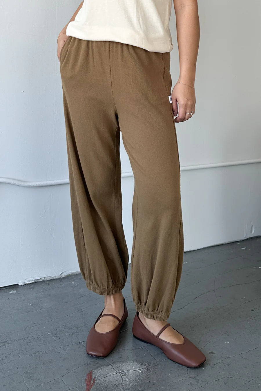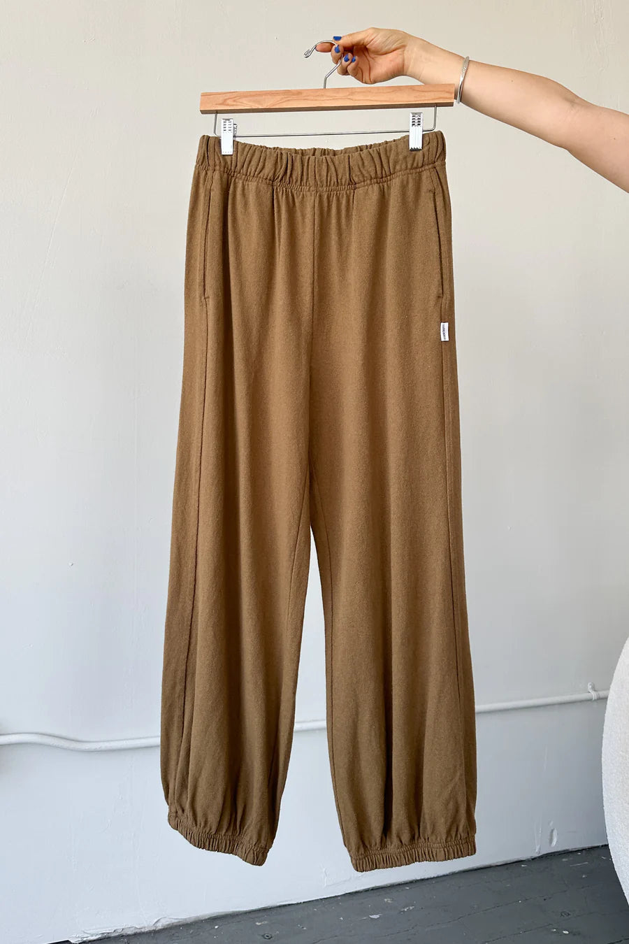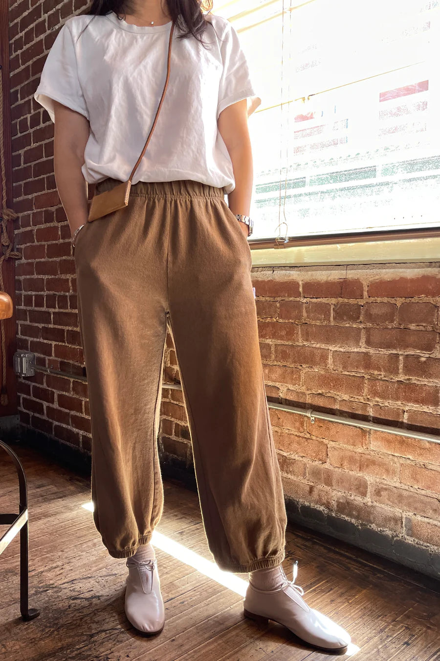 These are the pants we love to live in year round! With an elastic leg opening that pairs with any shoe, comfortable elastic high waist and side slit pockets, she will be your new uniform at home, in the office, around town and even the great outdoors. Gorgeous heavyweight 100 cotton, garment dyed and pre-washed for a rich textured look that is not see-through and does not shrink in the wash!
