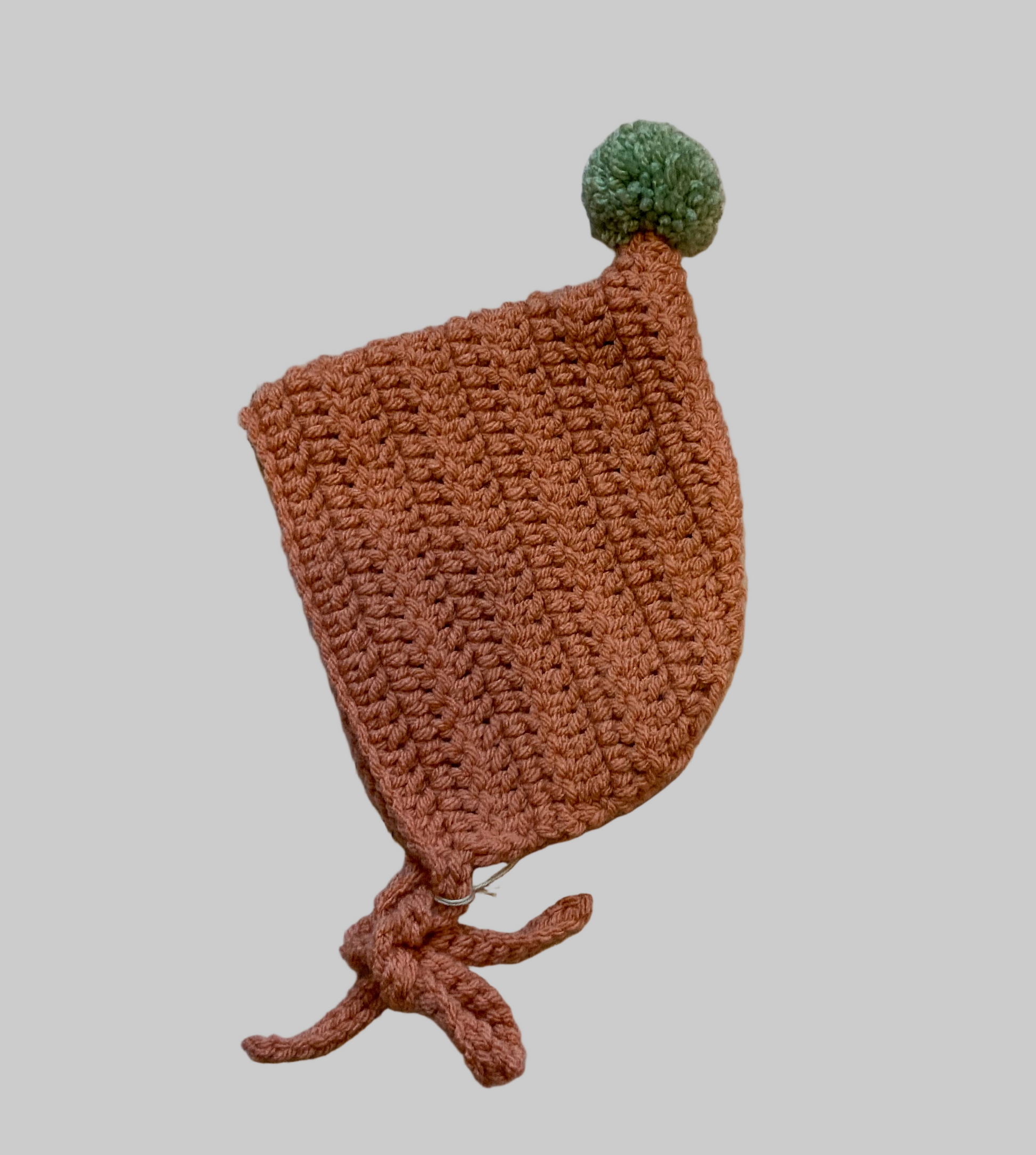 Pom Pom Pixie Hand Knit Bonnet - Pink
