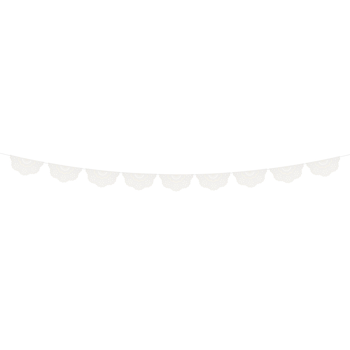 This pretty party range is inspired by broderie anglaise, a delicate lace design that's back in style. White scalloped pennants combined with soft ivory embossed details make this paper garland look stunning. It's perfect for hanging in the porch or doorway, on the wall, or draped on the party table - ideal for a bridal shower or baby shower. It's beautifully packaged in a paper envelope, making it easy to store and reuse time and time again, and also making it a fabulous decorative gift.