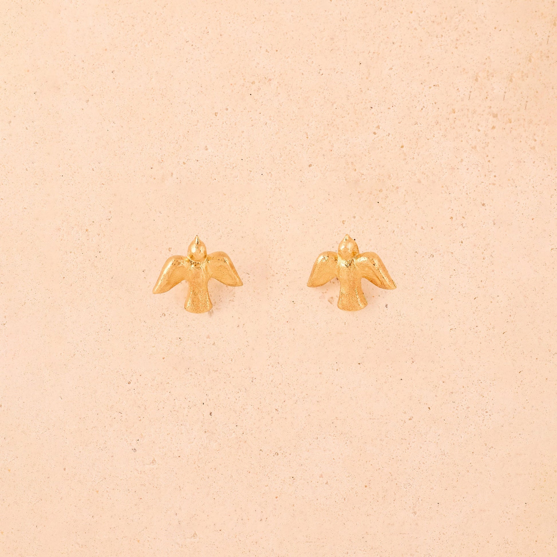 A small, detailed flying bird stud earrings with outstretched wings, as if soaring through the sky.