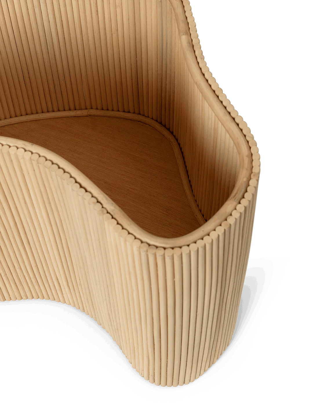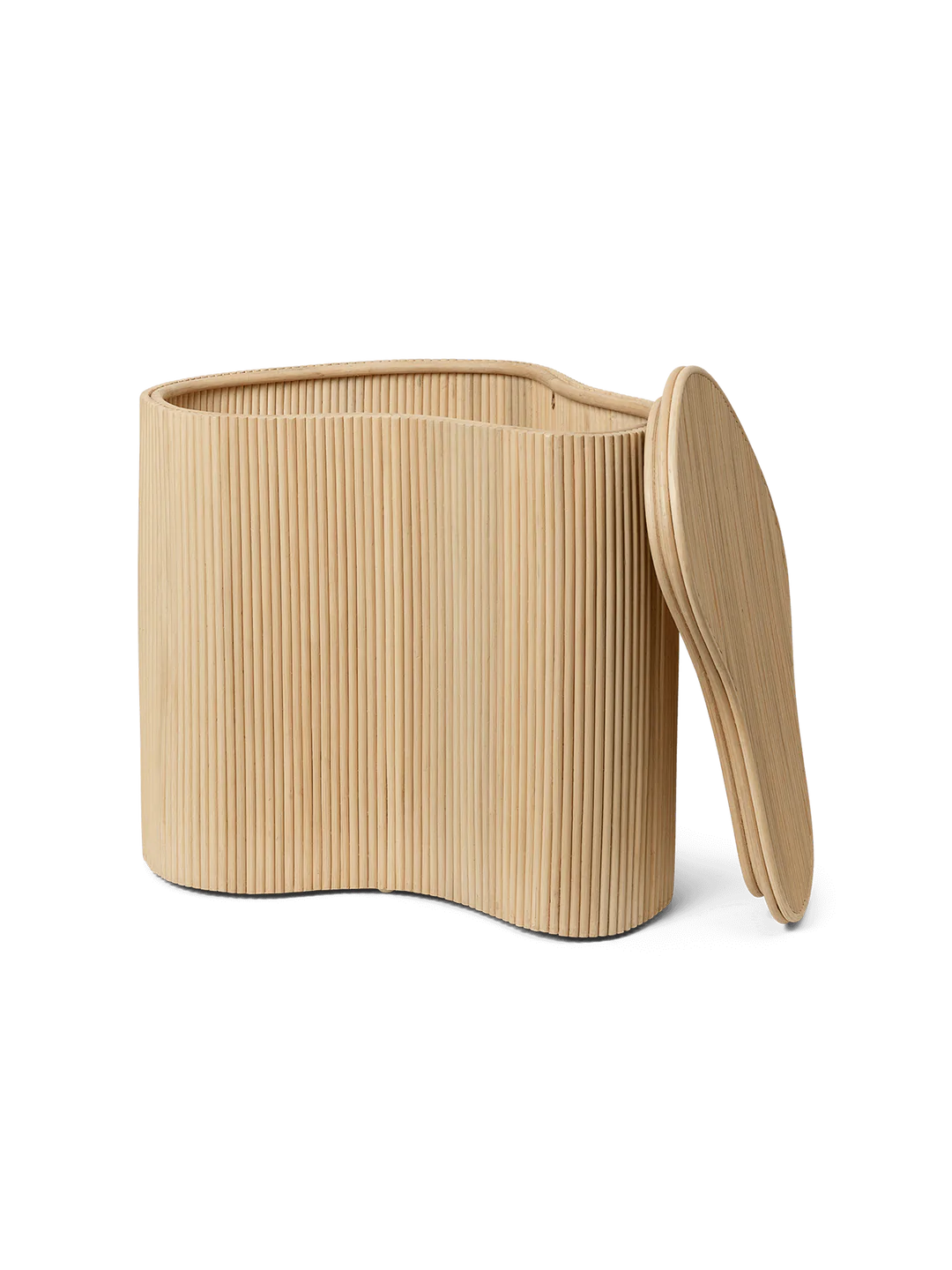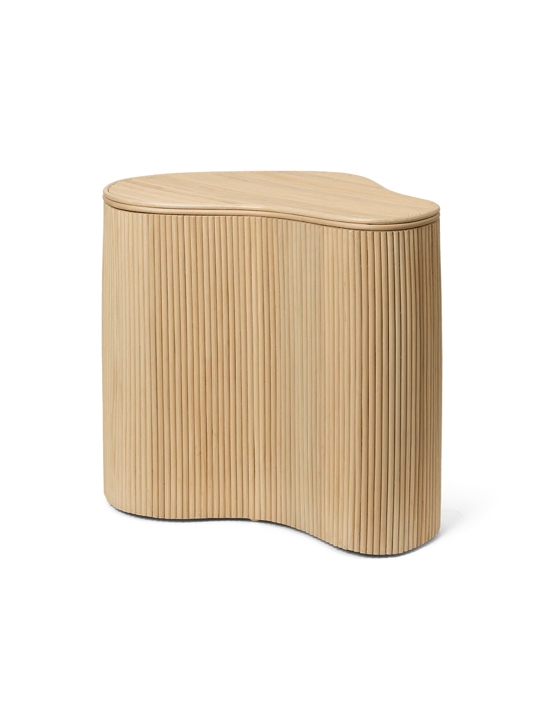 Characterised by its soft, organic shape and practical lid, the Isola Storage Table is both suitable as a spacious storage container and a bedside table. As the day is coming to an end, the table can also be used to tidy up the kids' room to make it ready for new adventures. The inside of the Isola Storage Table is made from MDF and plywood, while the top and front are made of rattan.