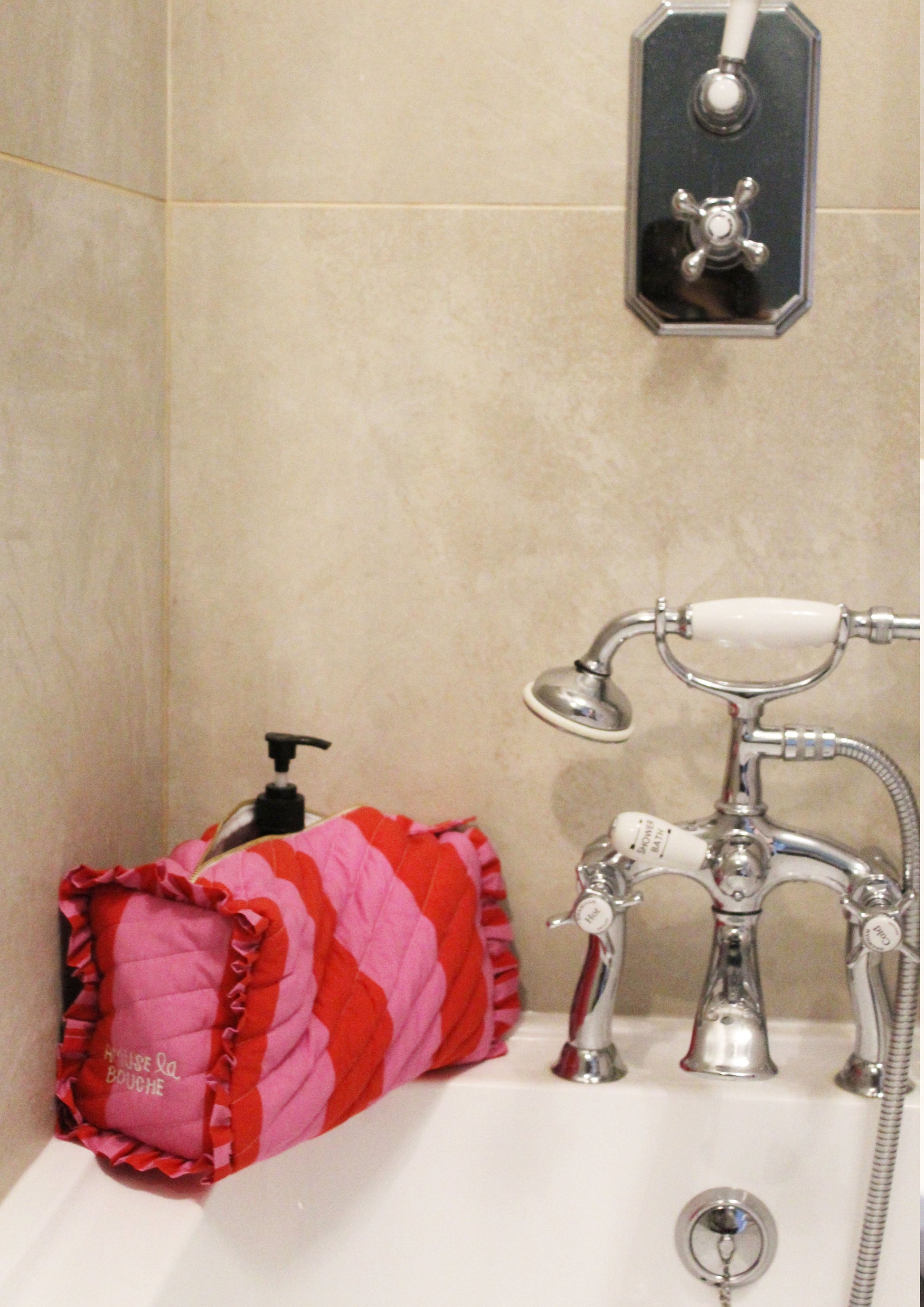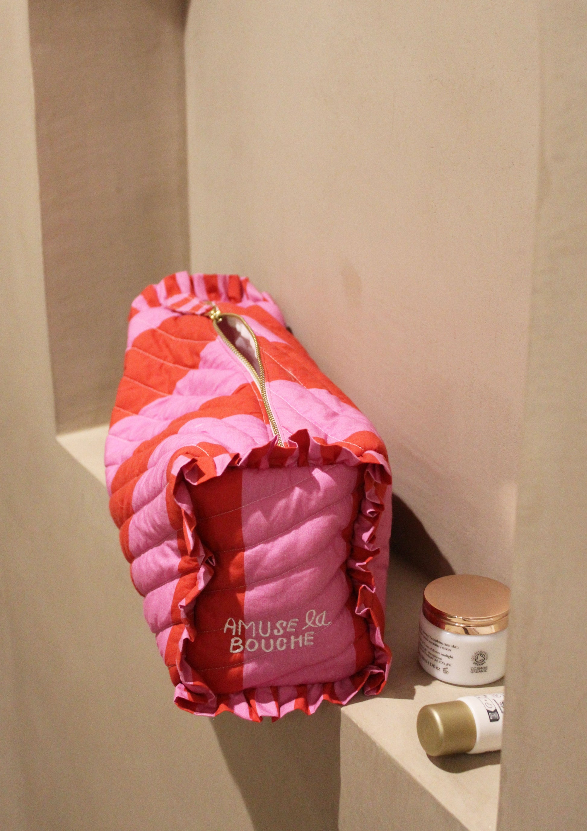 This makeup bag is made from 100% cotton and printed with eco-friendly dyes. Measuring 29 x 15 x 13 cm, it offers a perfect balance of style and practicality.