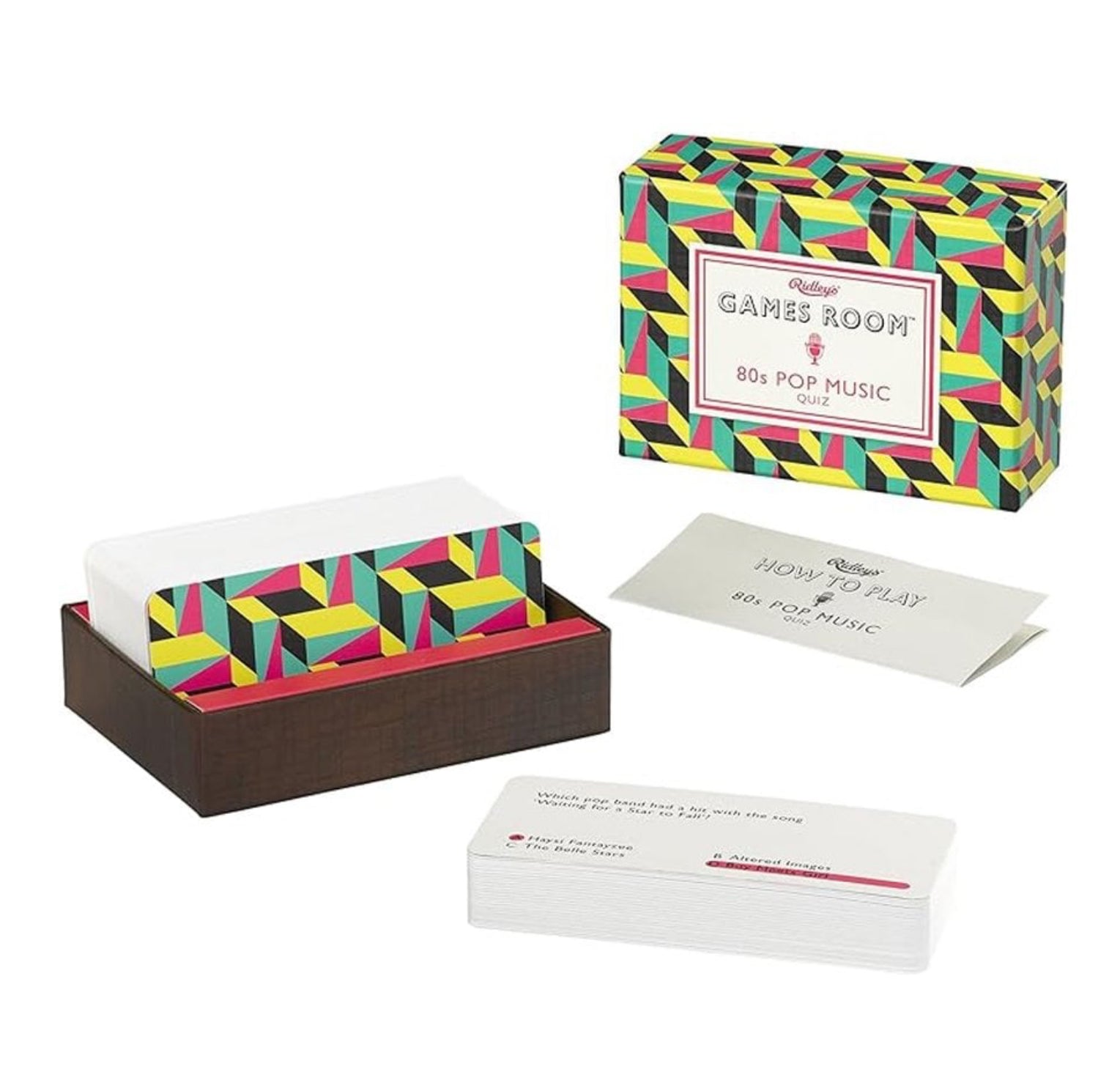 Are you after a bit of 1980s nostalgia? Look no further than this fabulous 80s Pop Music Trivia Quiz from Games Room! Relive the decade that brought us shoulder pads, mullets and boom boxes with 140 multiple choice question cards to challenge your music knowledge. It comes packaged in a fun 80s-inspired geometric print box.