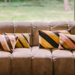 The striped velvet cushions have the power to stand out. Their sumptuous textures and exciting colour combinations make them perfect for mixing and matching, or as eye-catchers in a subdued composition.