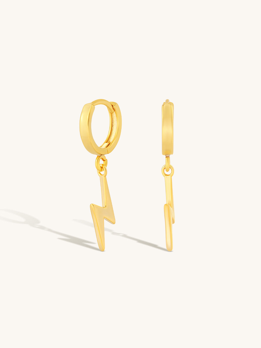 Clicker huggie hoops featuring subtle lightening bolt charms that look just as impactful alone as they do mixed with other hoops. An every day 'go to' that upgrades your look.