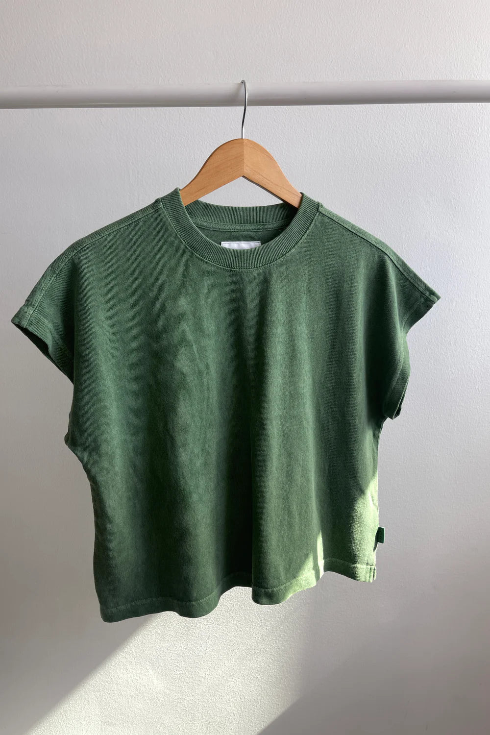 Jeanne Tee is our perfect muscle tee. She features a shorter length to pair perfectly with high waisted bottoms but still give enough coverage for mid-rise bottoms and just the right amount of off shoulder dolman sleeve. She has a high crew neck with an extra wide neckband that adds to her signature charm.