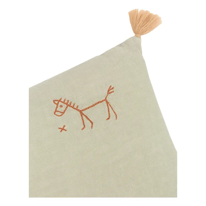 Linen Embroidered Cushion - Matcha