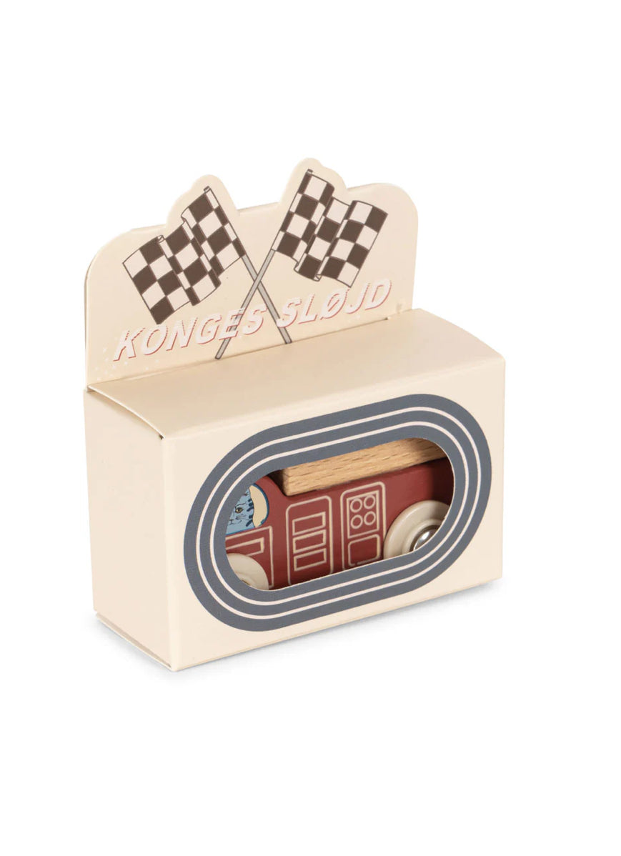 Small wooden car made for fast fun. Vroom-vroom, off we go!