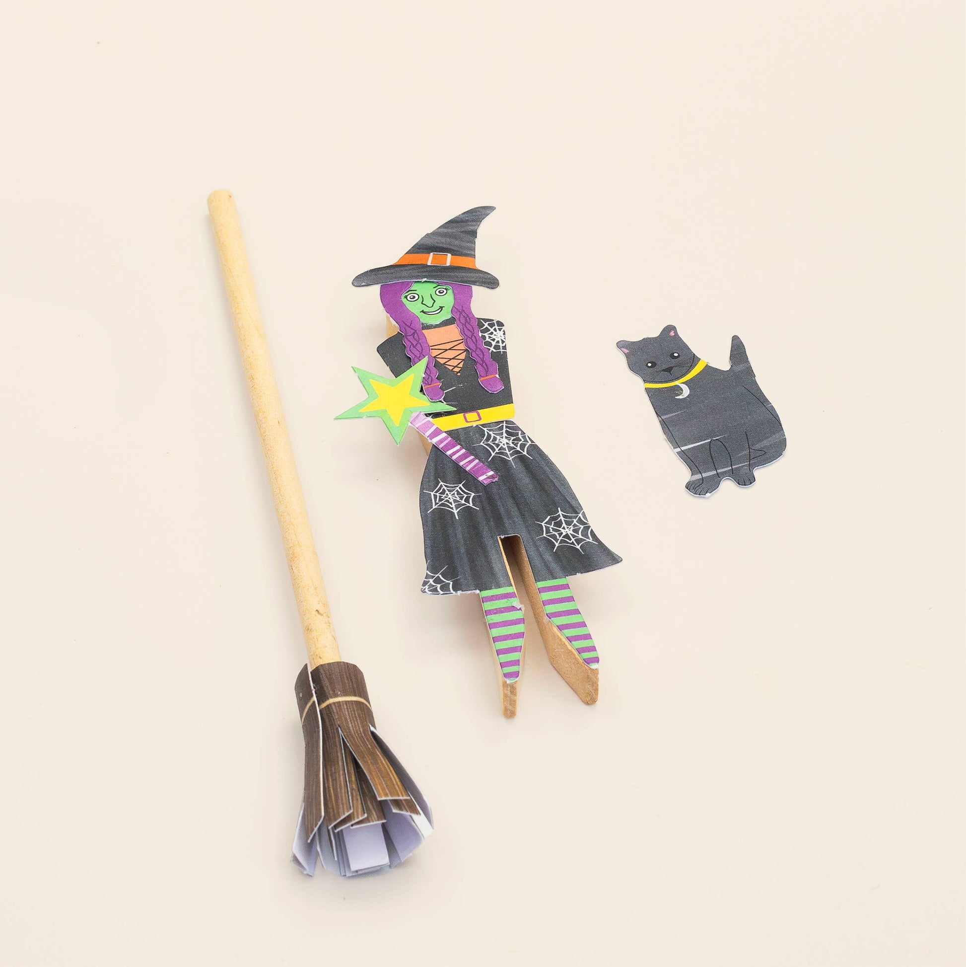 Children love to craft & create, & this witch peg doll is no exception. Not only a fun activity, this peg doll also sparks imaginative play. The witch comes with a skirt, top, broom, wand, cat & hat.