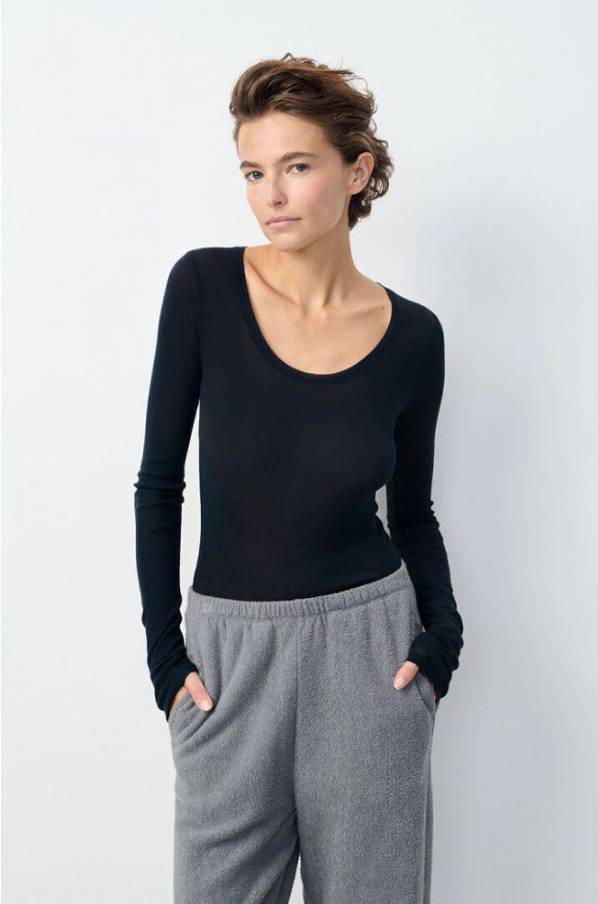 The Massachusetts long-sleeved t-shirt is a wardrobe essential. Made from exceptional Supima cotton, it is ultra-light, soft and subtly transparent for a second-skin effect. It is an ideal base to wear under a knitted jumper, for discreet, natural comfort.