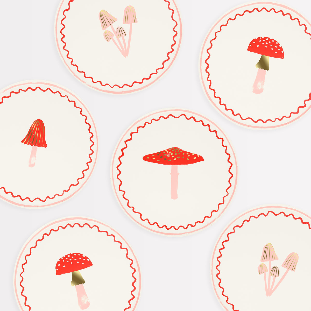 Mushrooms are still having a moment and look magical as a Christmas plate design. Their red and white fit the traditional festive colour theme perfectly, with modern pops of stylish gold foil and pink for extra effect. These small paper plates are ideal for savoury or sweet treats, or for a cocktail party
