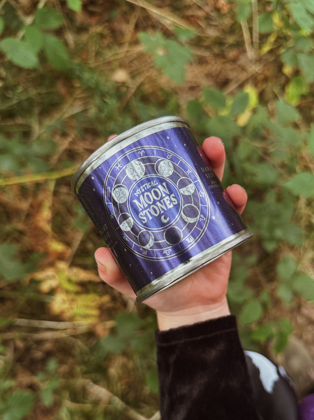 This shimmering little tin holds six very special moon-shaped chocolate truffles , gathered from the light and dark sides.