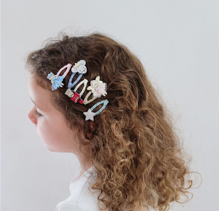- Clips adorned with tiny nutcracker, fairy, ballerina, mouse and a sparkling star all intricately crafted from a pretty combination of matt, metallic and glitter fabrics