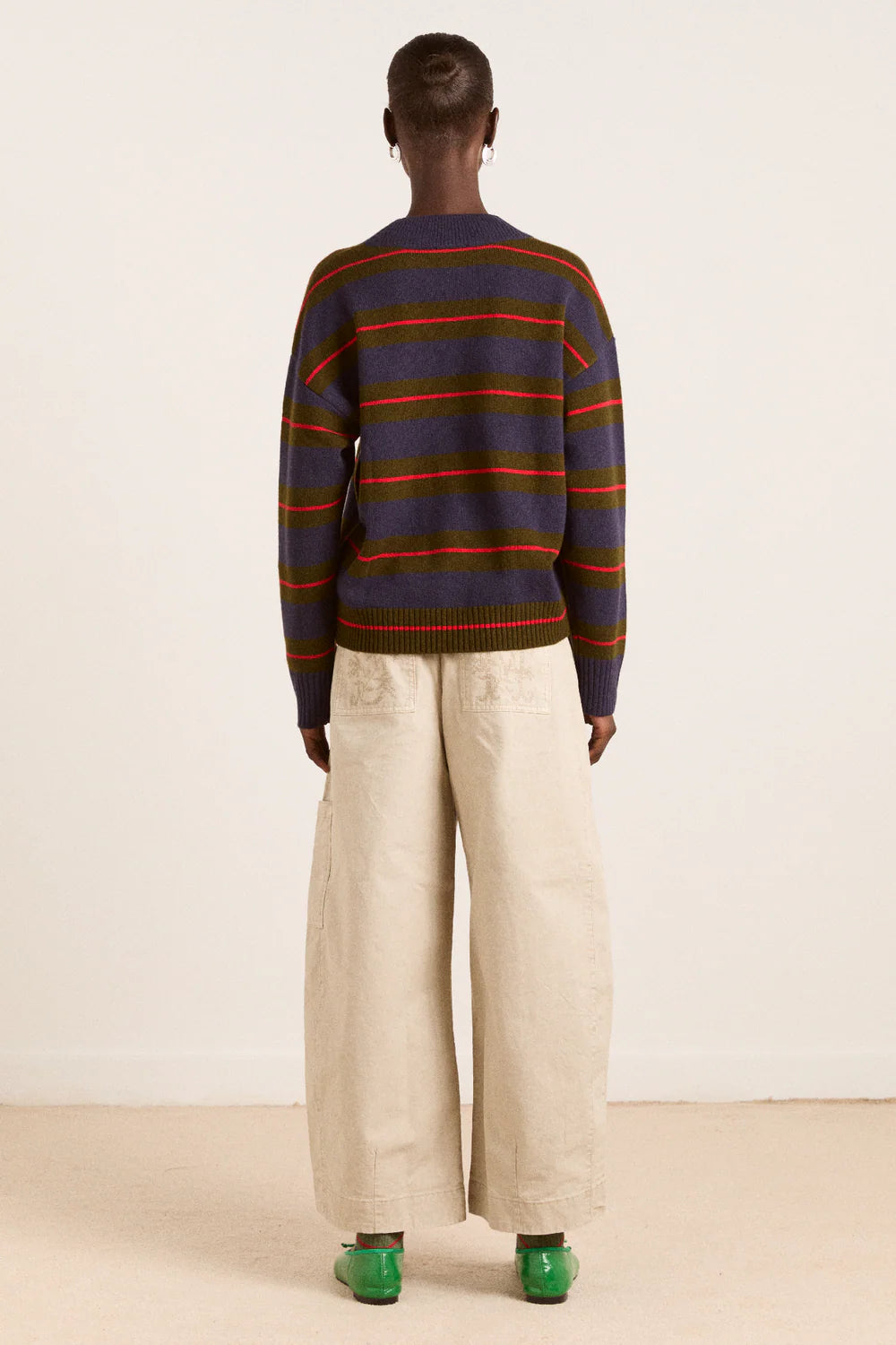 A bold everyday staple with an easy, oversized silhouette. Cut from heavy jersey cotton, this long sleeve features wide sleeves, bold stripes, and a relaxed drape for all-day comfort.