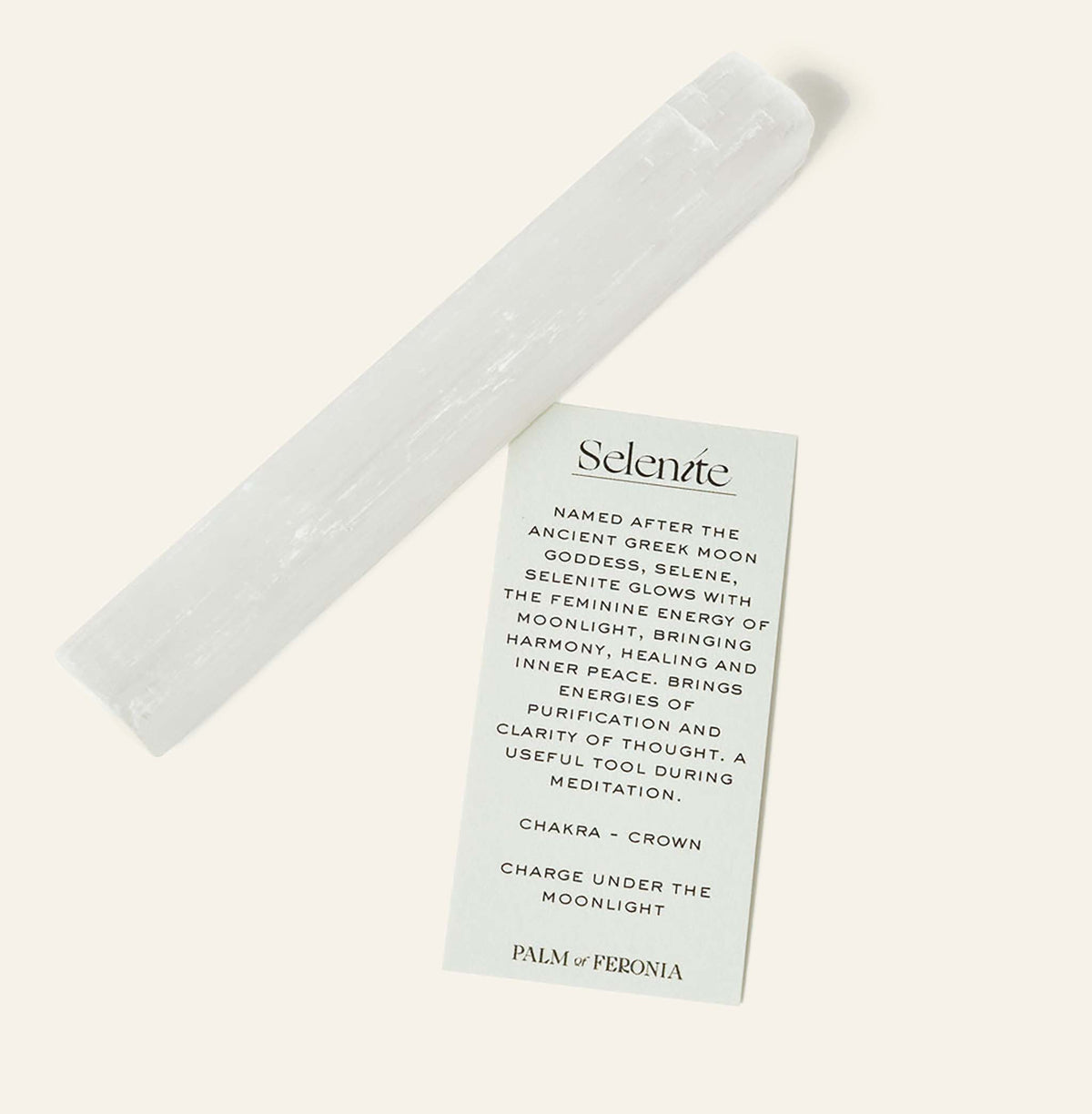 Selenite wands are traditionally used to cleanse the aura of negativity and welcome a divine influence. Named after the ancient Greek moon goddess, Selene, selenite glows with the feminine energy of moonlight, bringing harmony, healing, and inner peace. Selenite brings energies of purification and clarity of thought and is a useful tool during meditation.