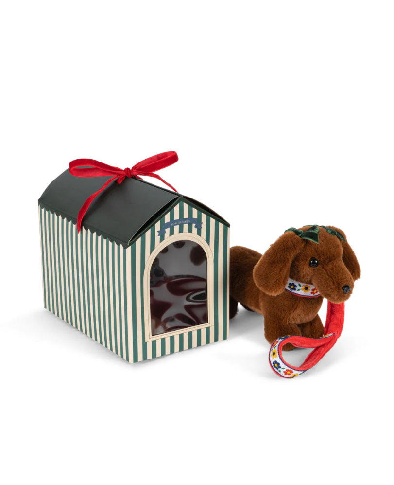 Soft pet puppy with its own little home that is easy to carry. The tiny puppy comes with its own leash too, so you can bring it everywhere you go.