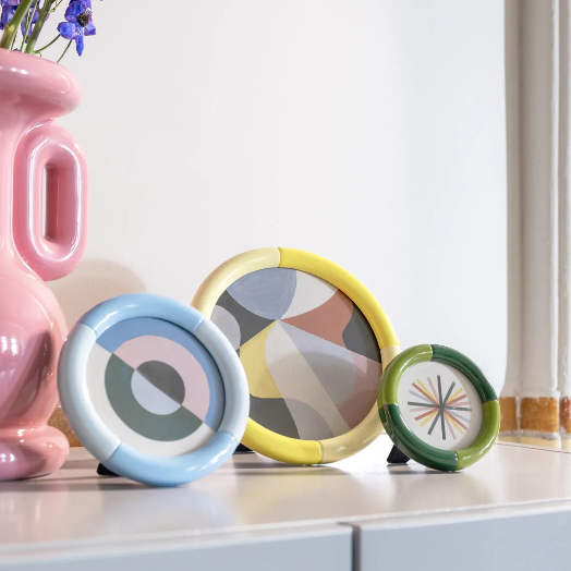 This new addition to the rift photo frame series brings a soft, rounded shape and a vibrant colour palette into the mix. Designed to complement the original collection, it invites you to expand your display with new tones and curves. Perfect on its own or styled with other rift designs, the rift round adds charm, colour, and a playful touch to any room, while keeping your favourite memories front and centre.