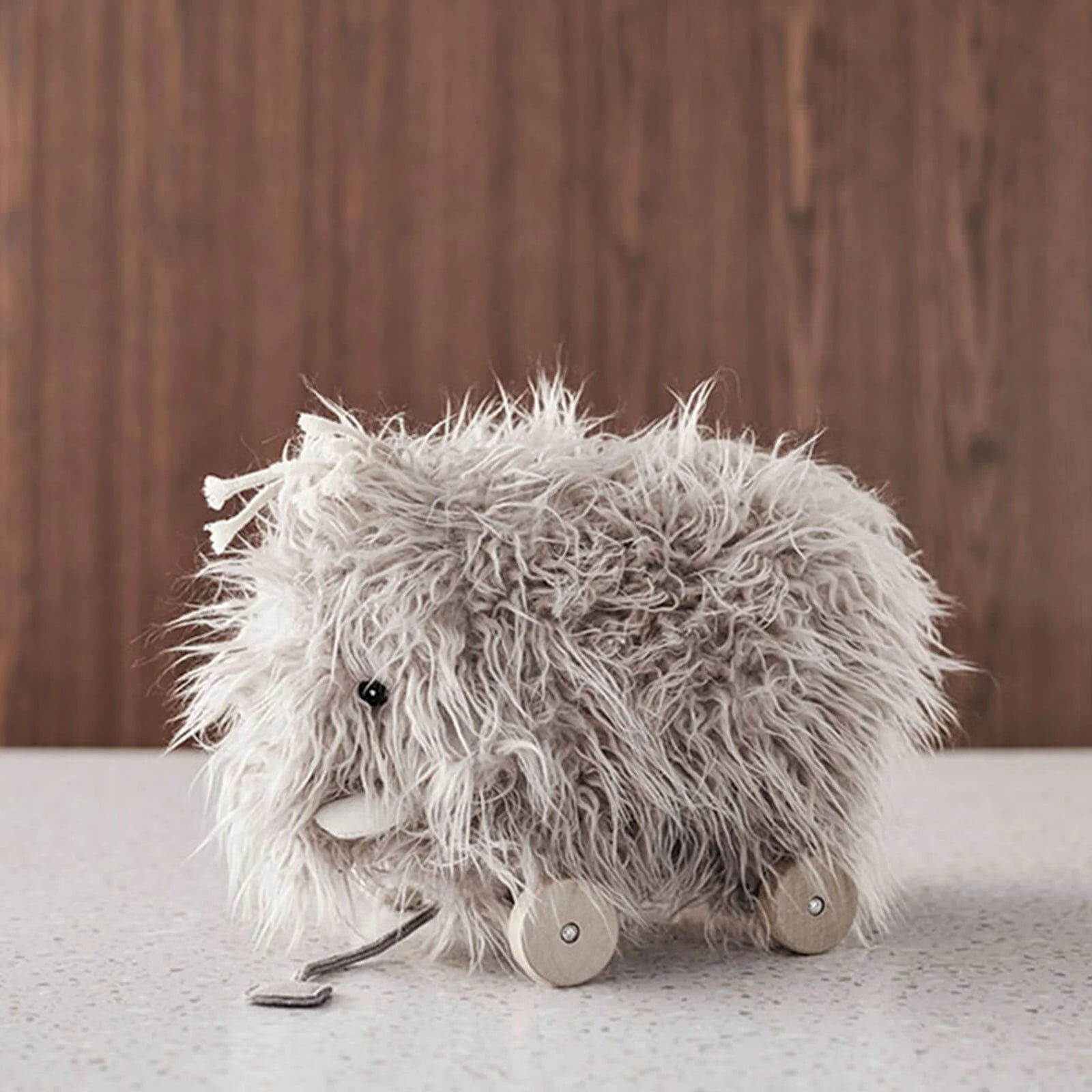 Cute pull-along toy from our NEO concept. The lovely fur makes it soft and cute to play with, both as a pull-along and as a regular toy. When not played with it also makes a lovely decorative detail for the children's room.