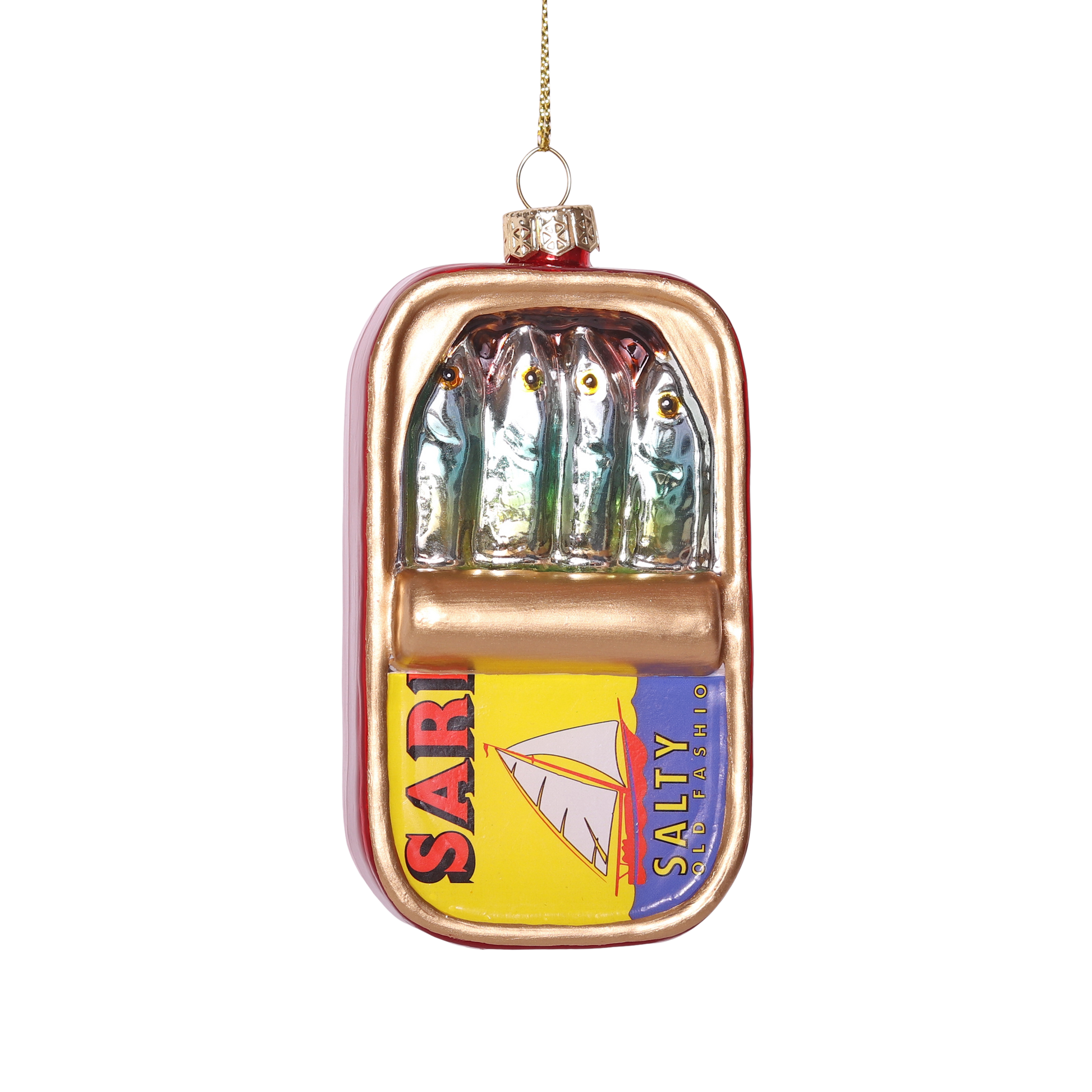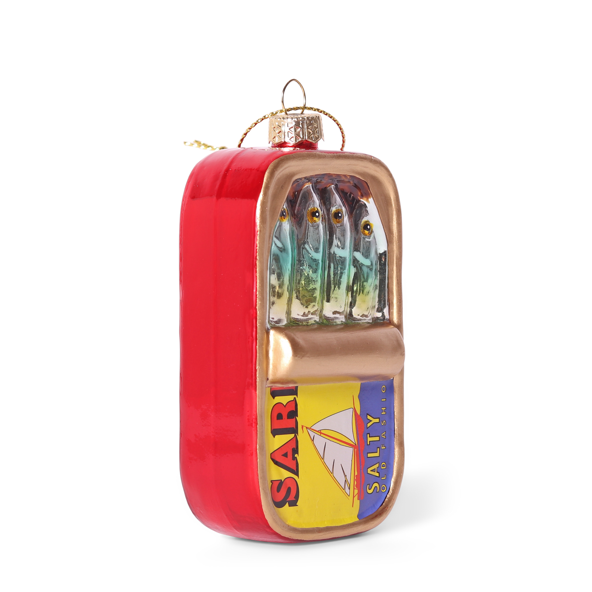 A tiny tin packed with charm. Inspired by the iconic sardines, this glass decoration is mouthblown and hand-painted by skilled artisans — from the bold red and yellow can to the silvery fish inside—part of our cult food and drink collection.