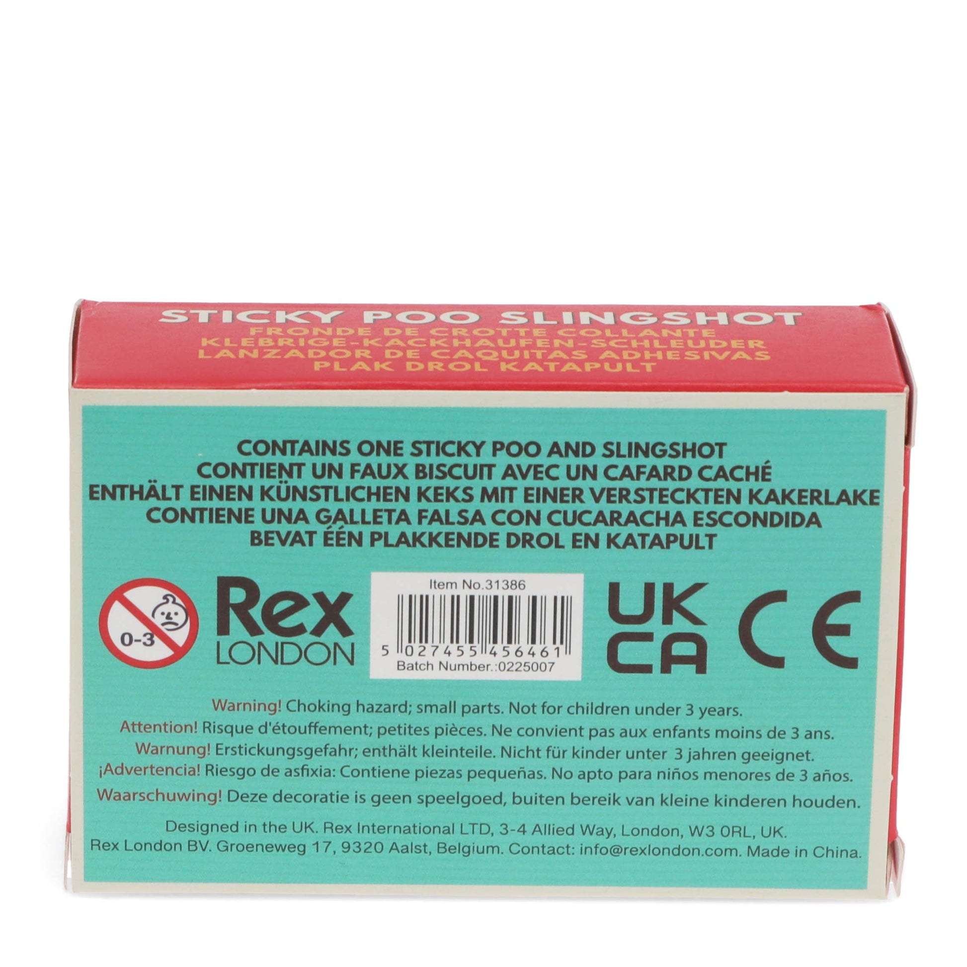 Cheeky slingshot toy that will provide many hours of fun and laughter for children. They will have a blast catapulting the fake elastic poo from the slingshot across a room. Simply load, stretch, then release. The poo's slight stickiness allows it to adhere to smooth surfaces for a short time.