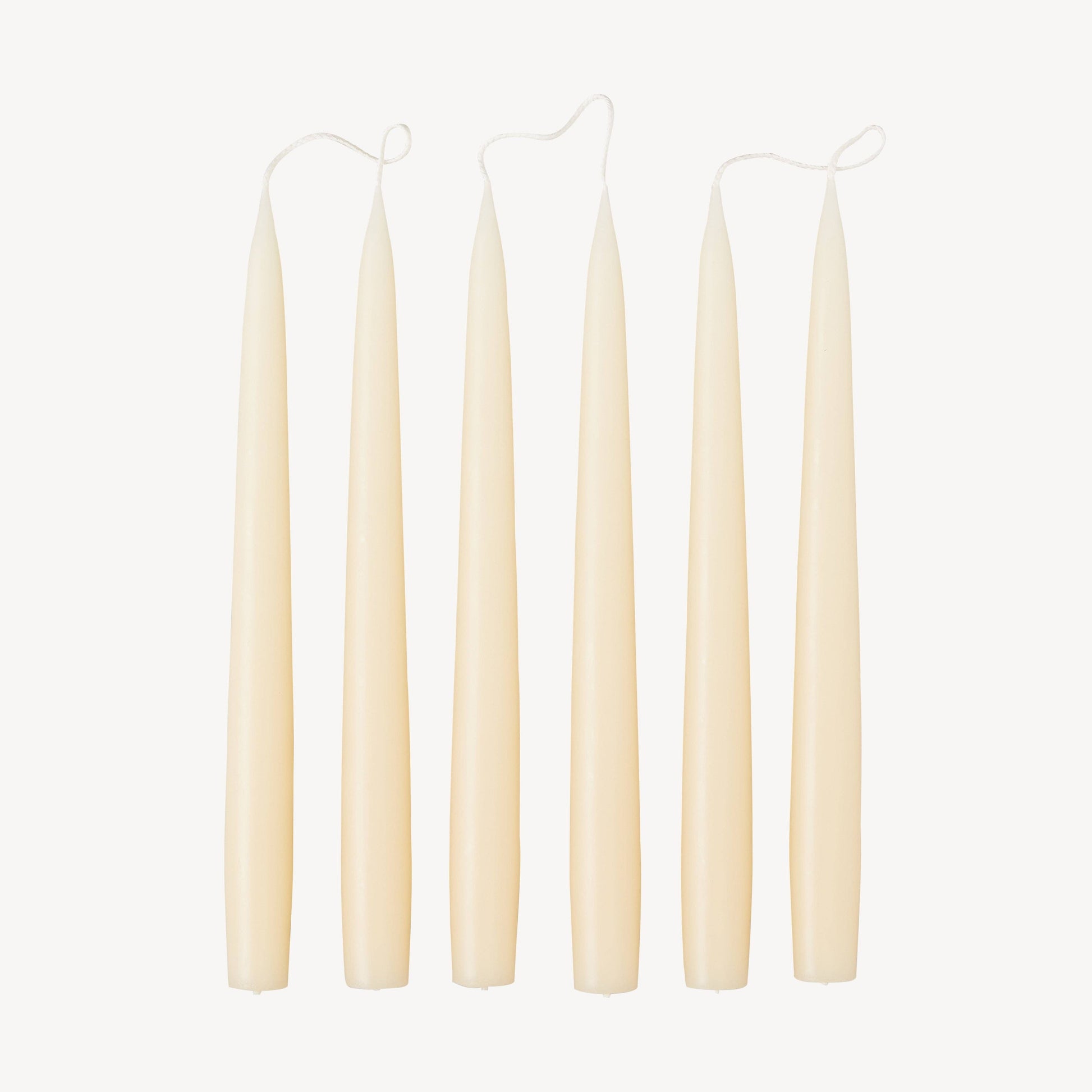 Candle Flair hand dipped, tapered dinner candles are crafted to burn drip-free and smokeless. They are made with 100% premium and unscented paraffin wax with a 100% cotton wick for the cleanest burn.